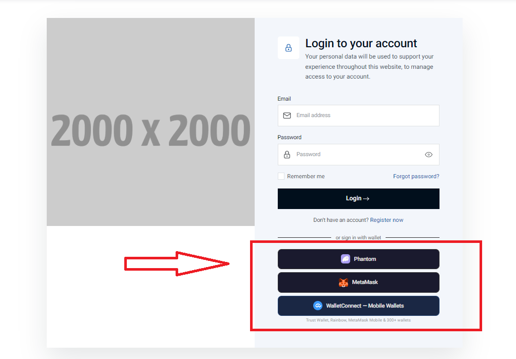 Sign up or log in using MetaMask, Trust Wallet, and 300+ Web3 wallets